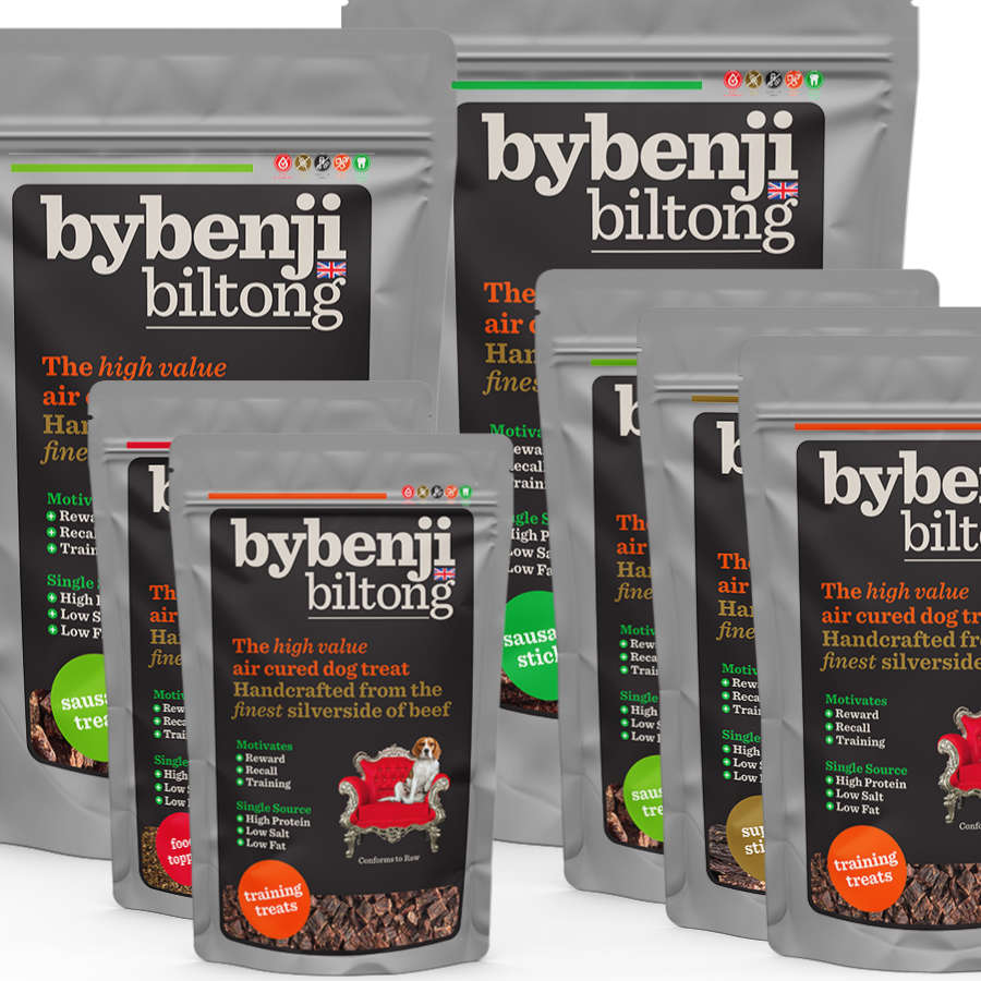 With a variety of bag sized and pocket pouches to decant your larger bags into, this is the ultimate in treat time packages. All our products can be frozen pre or post opening and all our bags are reusable and resealable, the combination of bag sizes means that every occasion from walking to training is catered for.