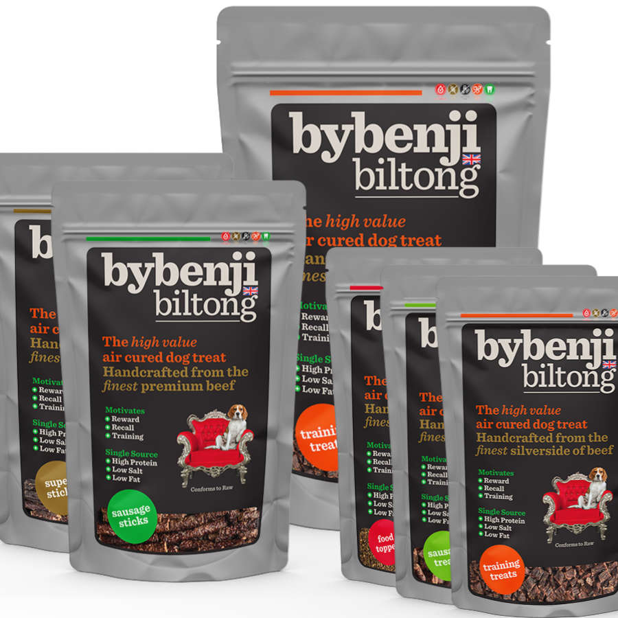 All our products can be frozen pre or post opening and all our bags are reusable and resealable, the combination of bag sizes means that every occasion from walking to training is catered for. Benefits of a bundle are not only for your dog, the saving made is comparable with ordering an extra bag, no better way to avert that Biltong emergency! Multi dog households will enjoy the variety , and why not share the experience by sending as a gift. Bundles of biltong means bundle of treat time fun, as no gathering is complete without a biltong treat!